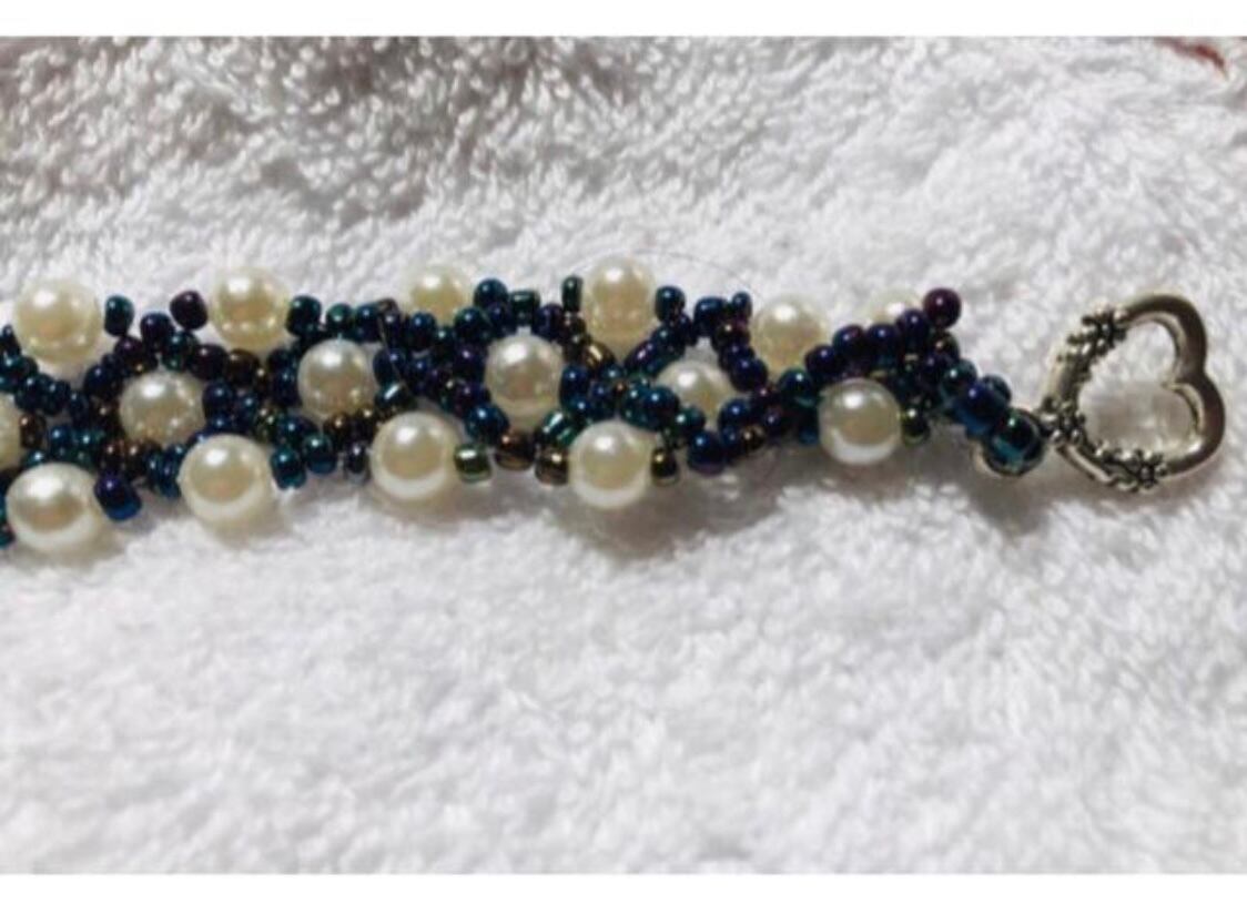ビーズで編み込んだ可愛いブレスレットです。