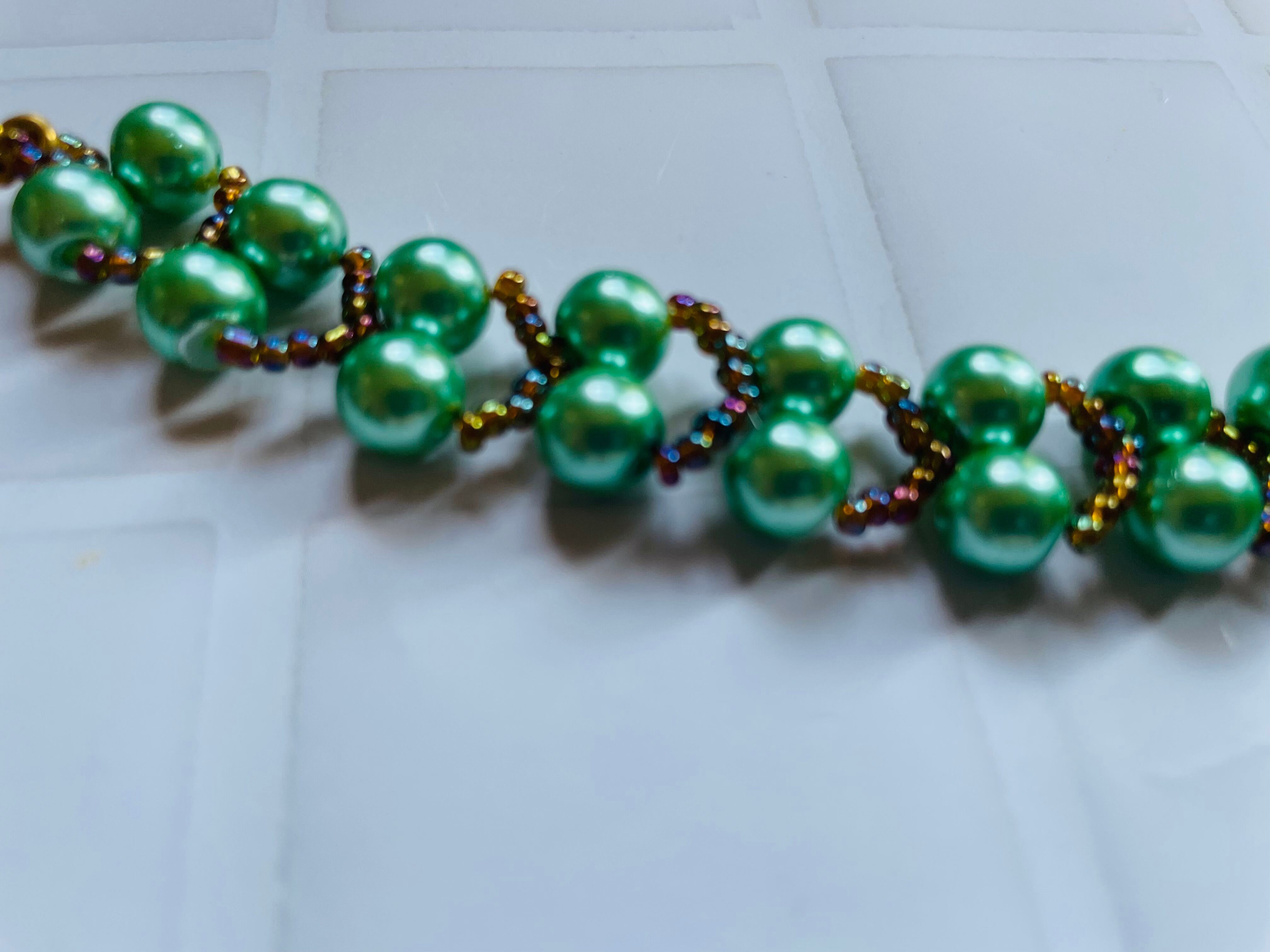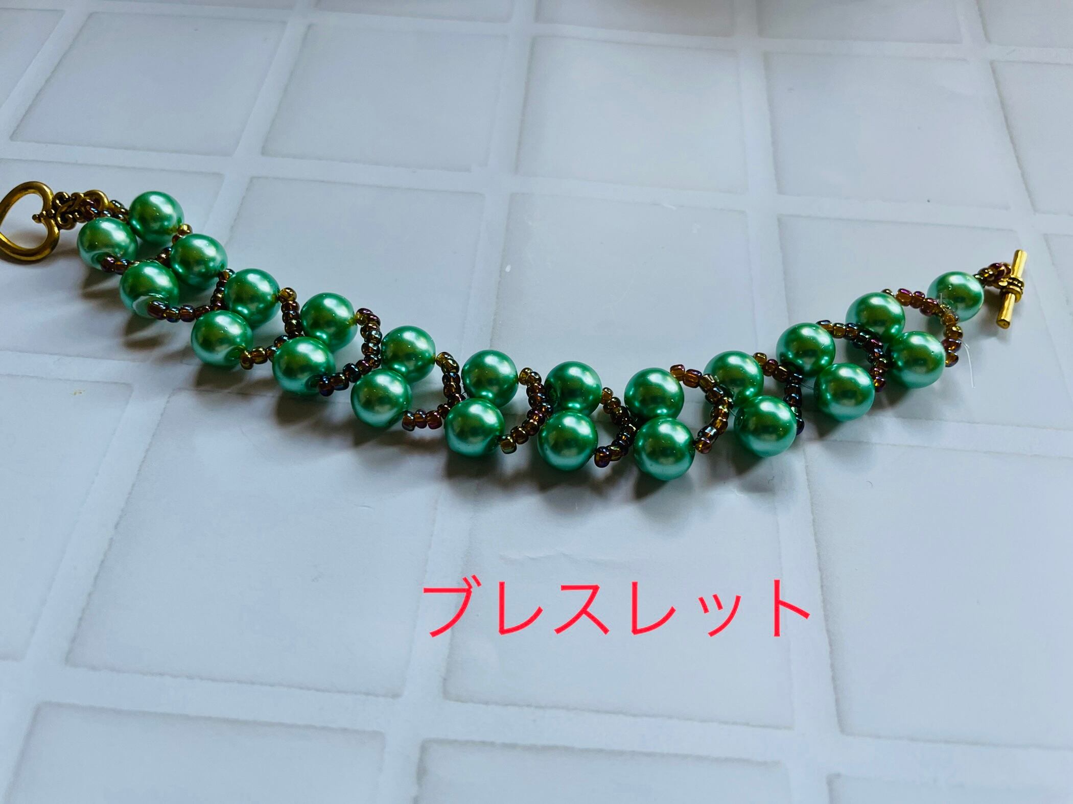 ビーズとガラスパールとのミックスのブレスレットです。