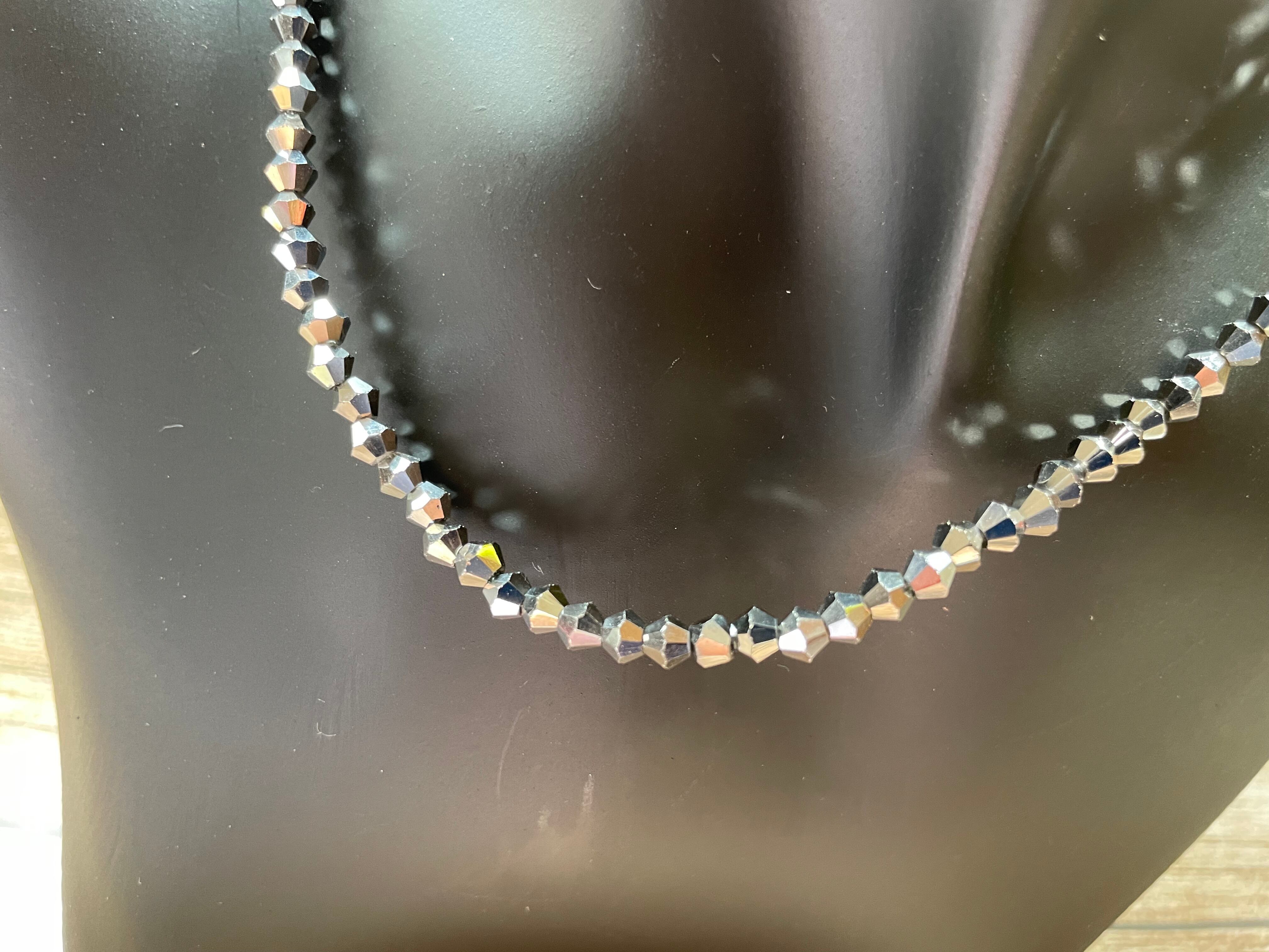 a71 男女兼用 六角形ビーズネックレス銀色