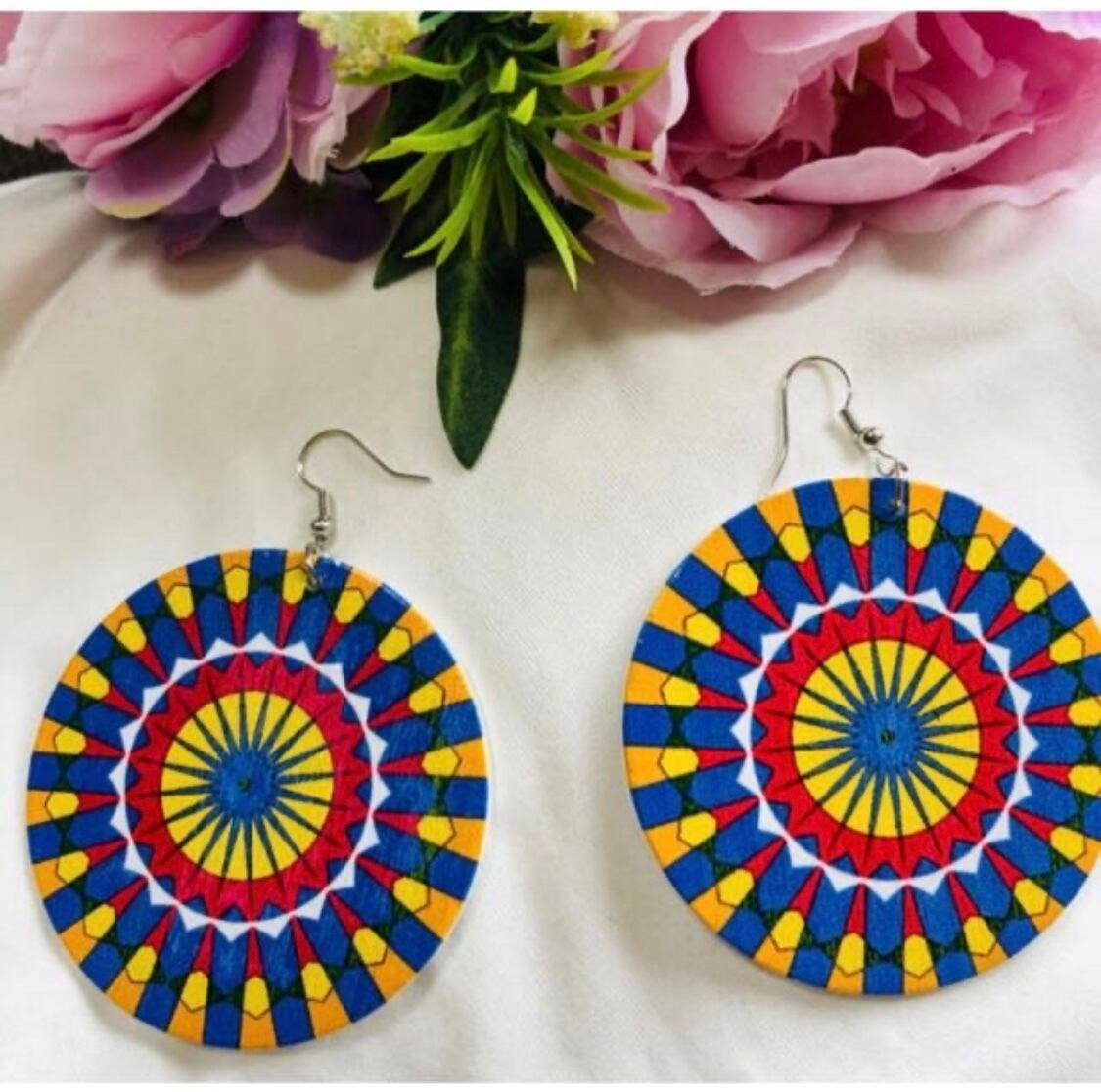 これらのピアスは、鮮やかな色合いと独特のパターンが特徴で、どんなスタイルにも合わせやすいです。