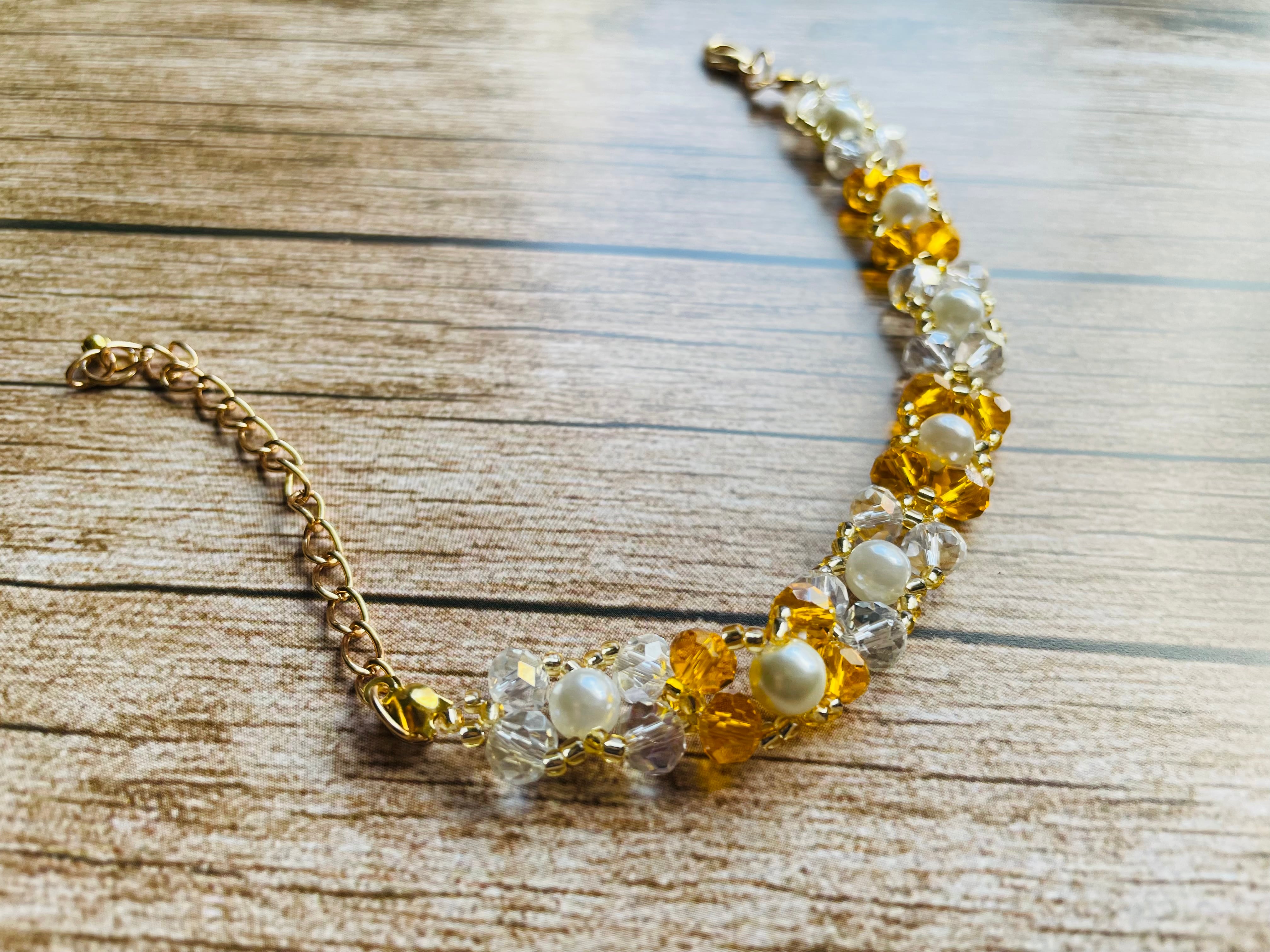 ビーズの質感が光を反射し、華やかな印象を与えます。