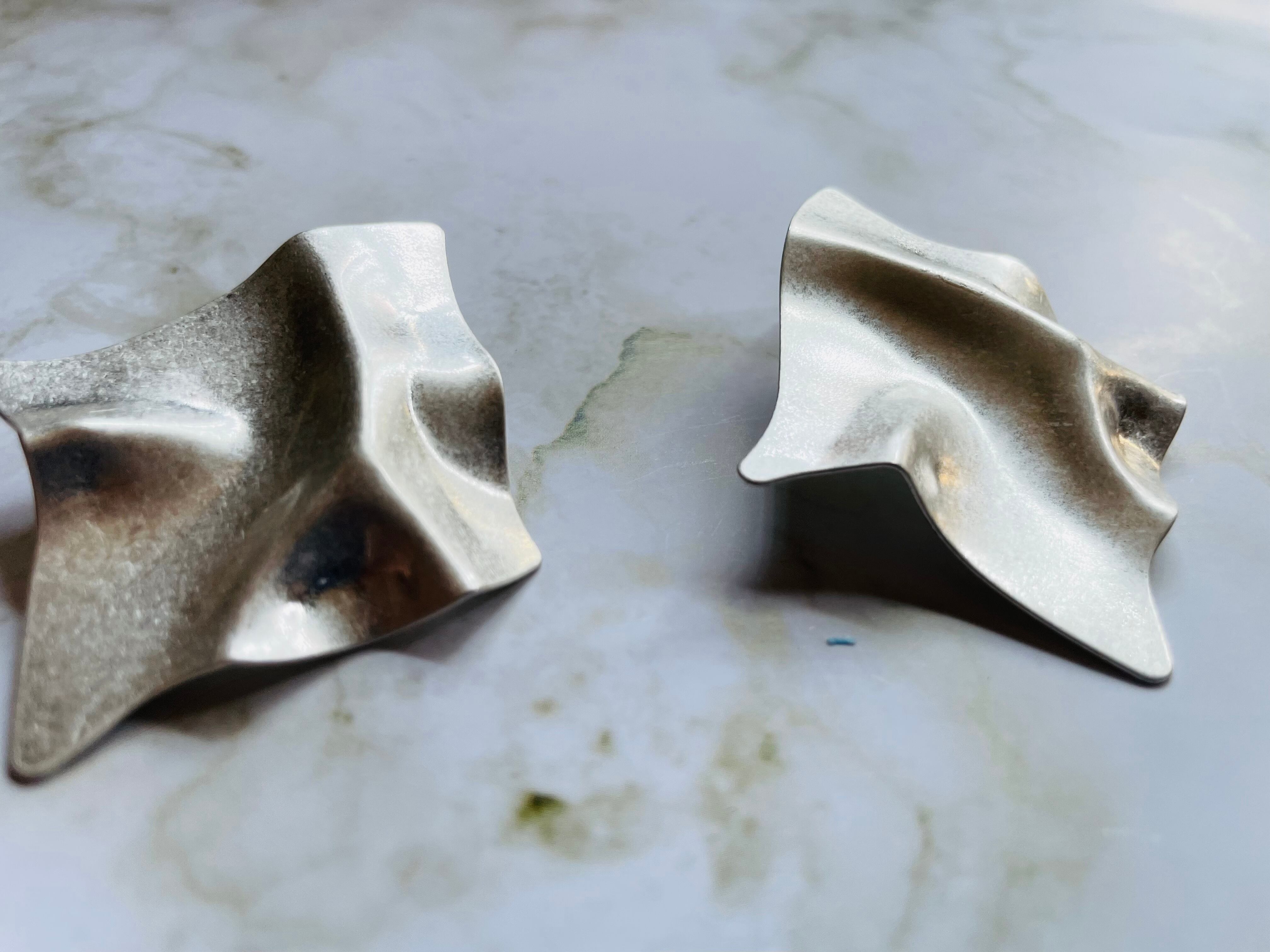 波状の形状が特徴のピアスは、シンプルながらも個性的で、どんなスタイルにもマッチします。