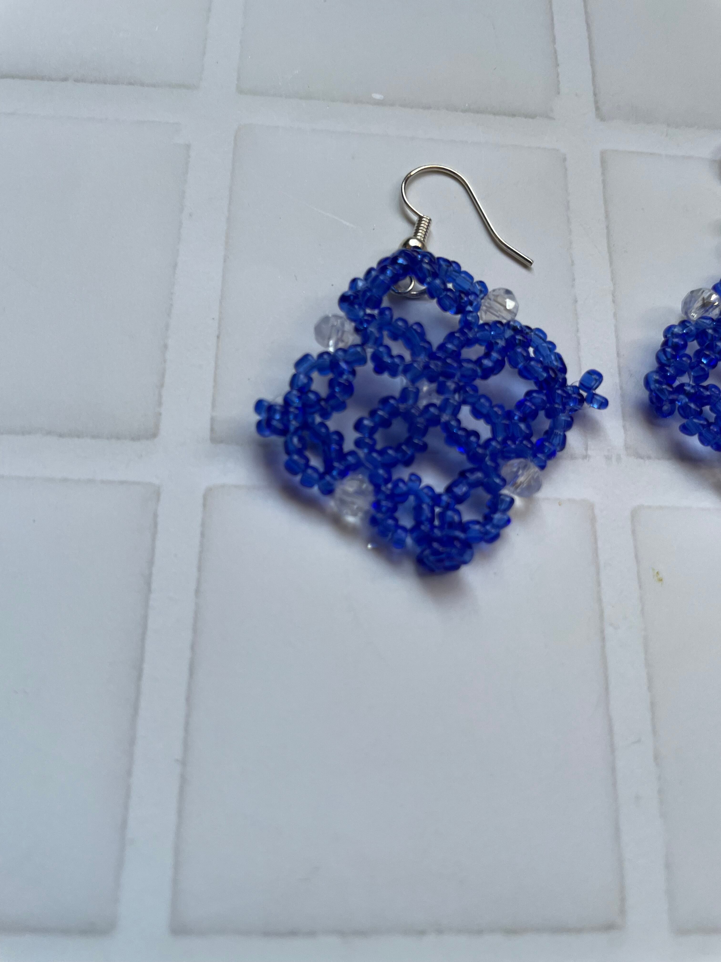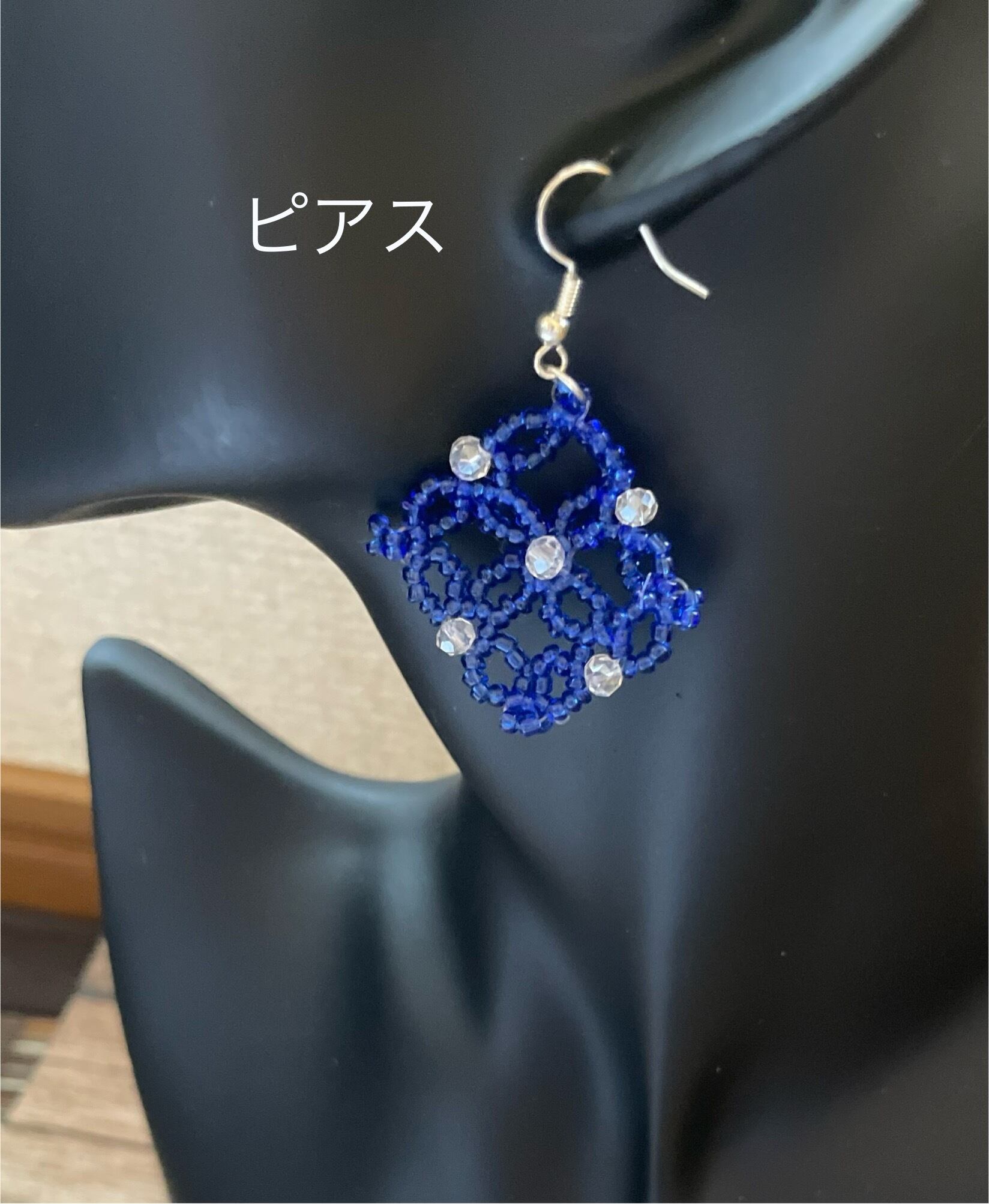 a43 ハンドメイド 青 ビーズ 格子状 ピアス