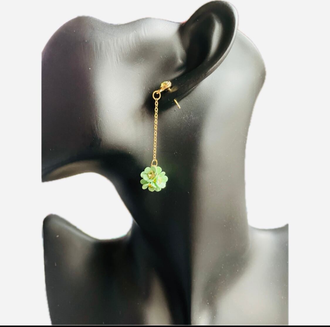 b170 緑色の花デザイン チェーンピアス